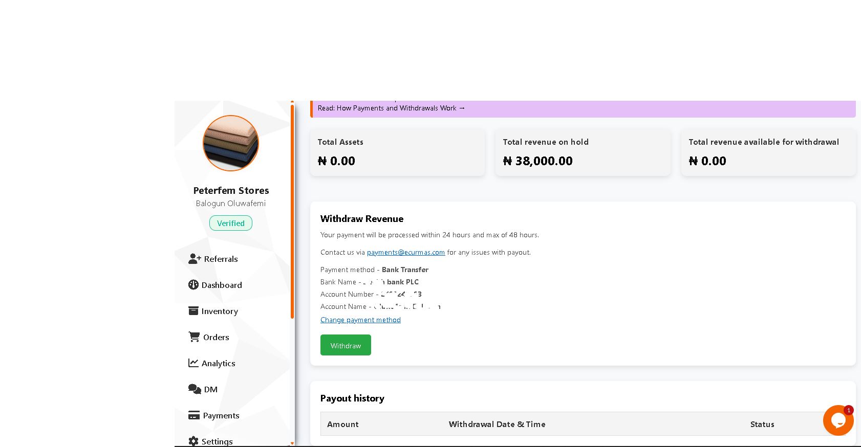 - Request withdrawal if revenue is up to Ecurmas International payment limit.